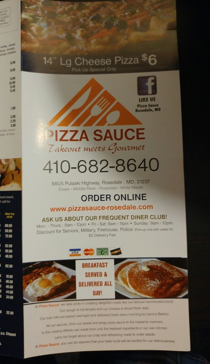 Welcome to Pizza Sauce, a hidden gem nestled in the heart of Rosedale, Maryland. Located at 8805 Pulaski Hwy, this local pizzeria is beloved by residents and visitors alike, and for good reason. With a menu that brims with mouthwatering options, Pizza Sauce is more than just a pizza joint; it's a culinary destination.